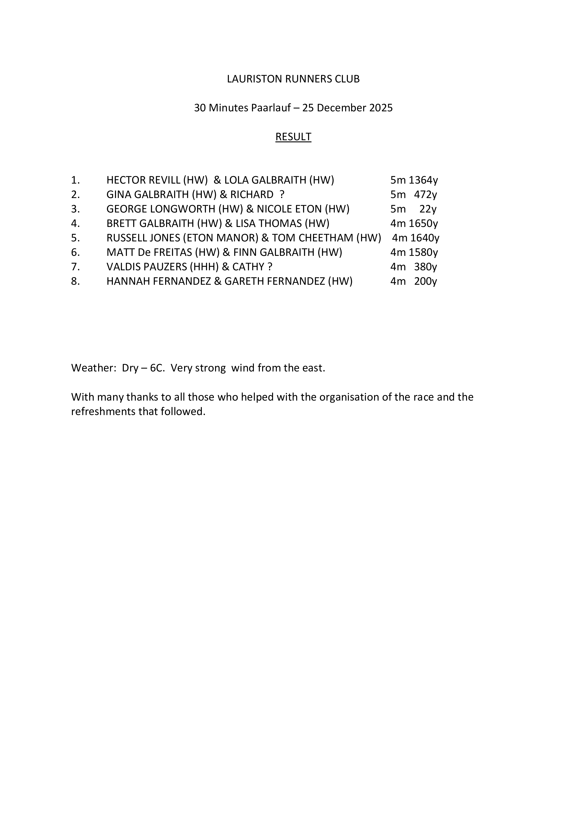 If you have memories of the Paarlauf that you would like to share, please contact webmaster@lauristonrunners.club